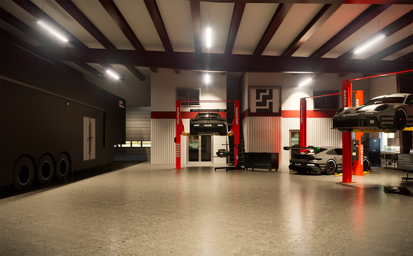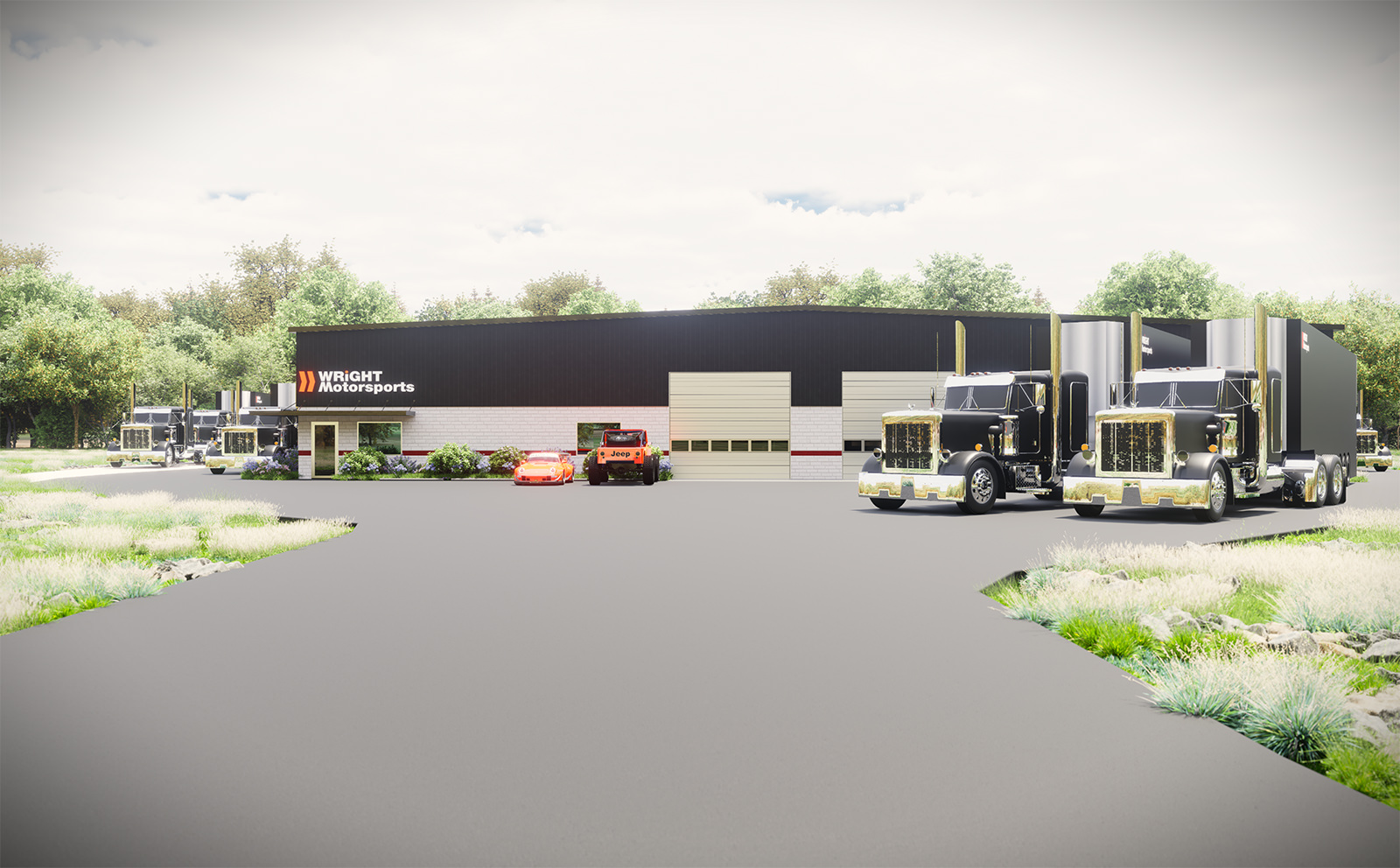 Wright Motorsports in Batavia, Ohio presented an unexpectedly complex industrial campus—an active race operation with more than 44 vehicles on site and a daily rhythm defined by loading, fabrication, staging, and rapid turnaround. Our proposal responds with a 12,000 SF facility addition conceived less as a “building expansion” and more as an operational infrastructure upgrade: a clear, legible framework for how people, cars, equipment, and deliveries move through the site.